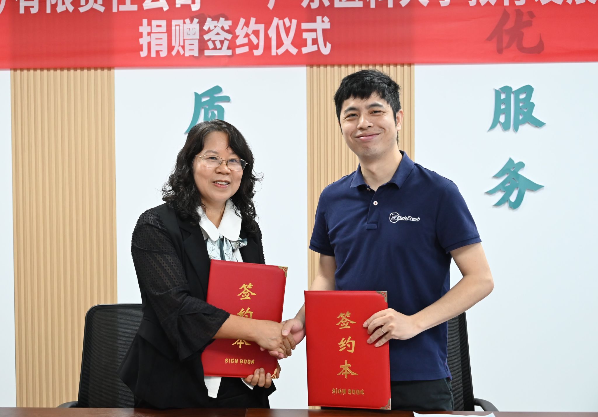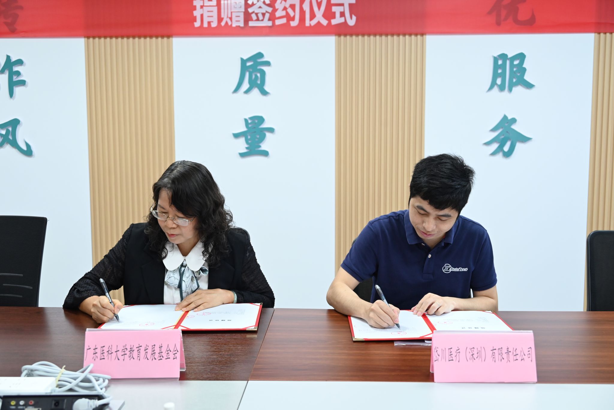 在全体人员的共同见证下,校企双方正式签署捐赠协议,顺利完成医疗设备交接。学校教育发展基金会现场为岱川医疗颁发捐赠证明及致谢牌匾,以铭记这份暖心善举,定格校企携手援非的温情瞬间。