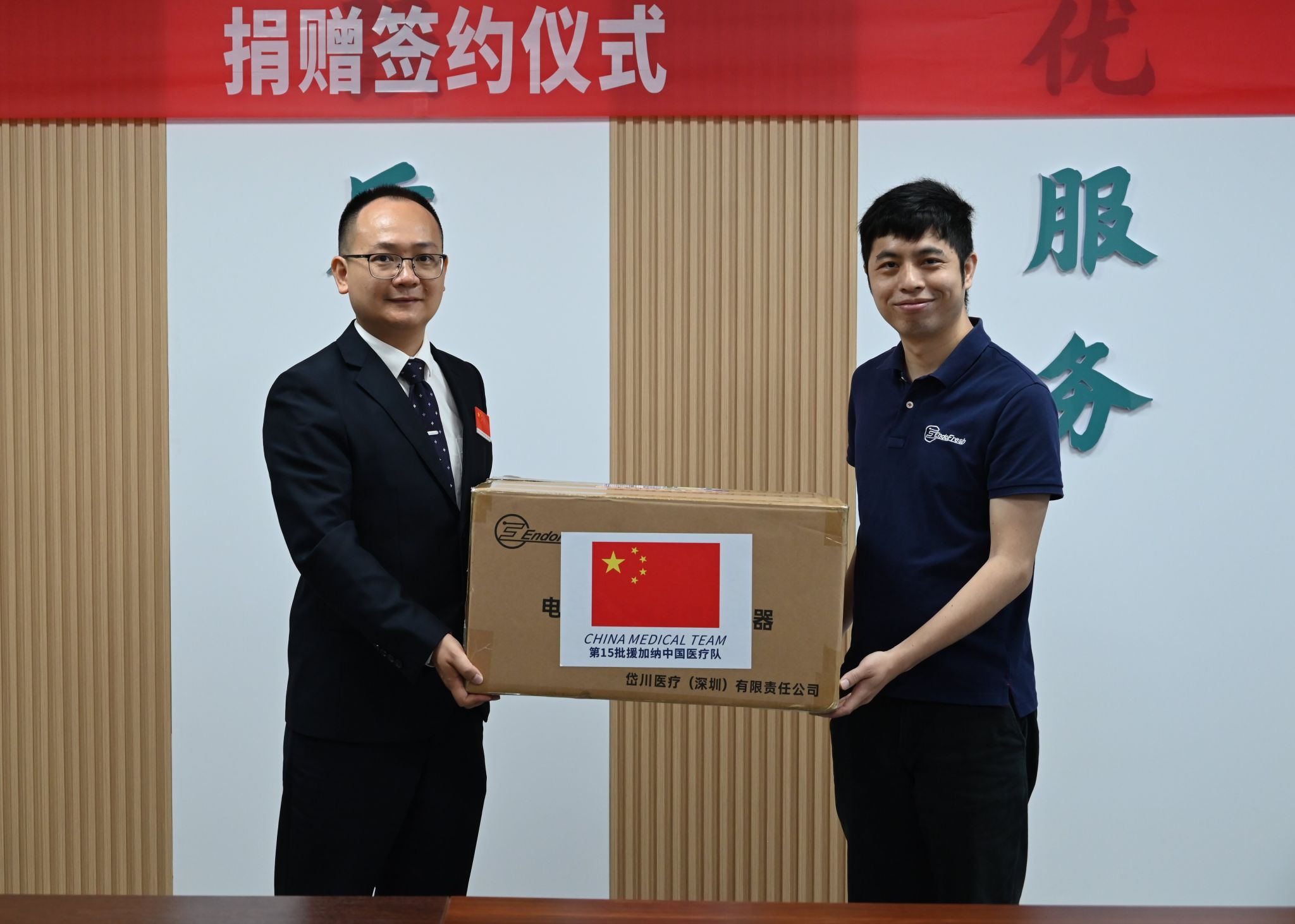 颜显欢经理在发言中传递了岱川医疗的初心与愿景,他表示,让医疗科技惠及更多群众,是公司始终坚守的初心与使命。加纳当地医疗资源相对匮乏,援非医疗队的坚守令人动容,公司希望通过此次捐赠为纽带,将更安全、更高效的诊疗设备与技术带到非洲,用专业与爱心跨越山海,为非洲人民带去健康福祉和美好希望,续写中非友谊新篇。